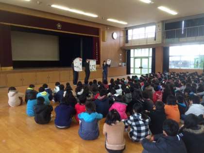 始業式では、久しぶりの登校で少し眠そうな児童もいましたが、式の最後の校歌では、元気に大きな声で歌えました。