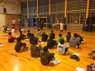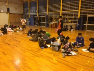 夜の集いでは今日の振り返りや明日のめあてを決めました。この後、琵琶湖から見える星空を見て楽しみました。
