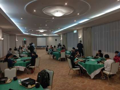 ホテルに到着後、部屋割り・避難訓練・入浴を済ませて、いよいよ楽しみな夕食です。昼の活動を元気いっぱいに頑張っていたので、お腹がペコペコのようです。