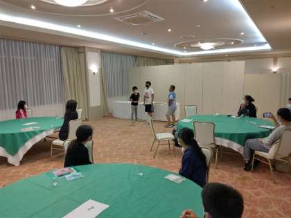 夜の集いでは、お笑いやクイズなどの出し物で盛り上がりました。