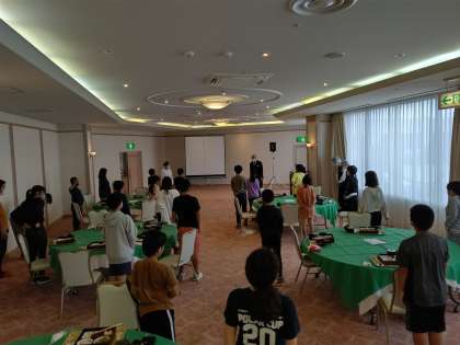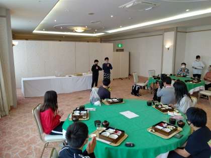 ごちそうさまをしてから、退館式でホテルの方に2日間のお礼の挨拶をしました。ホテルの方からは、温かいお言葉をいただきました。手厚い感染対策をとっていただいたホテルの皆様、本当にありがとうございました。