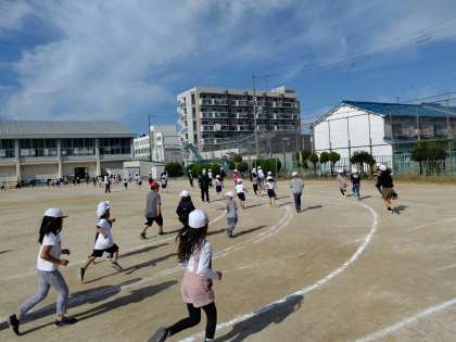 今日は1・3・5年の子どもたちがランニング集会で、20分休みに元気よく走りました。