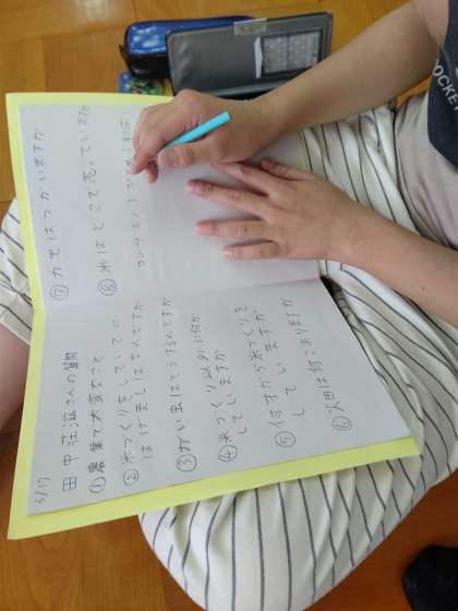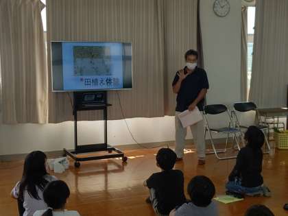 5年生が今年はバケツ稲をします。例年、田植え体験でお世話になっている地域の田中荘滋さんに来ていただき、オリエンテーションをしていただきました。農業についてのお話や、農家のお仕事についてのお話をしていただき、子どもたちの質問にもたくさんお答えいただきました。