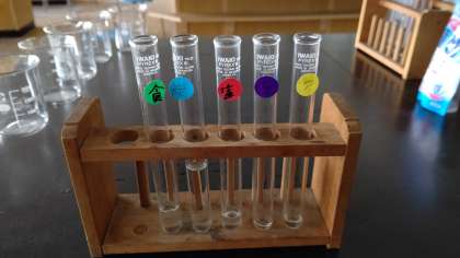 今日は、食塩水・炭酸水・うすい塩酸・重曹水・うすいアンモニア水を、リトマス紙とBTB液を用いて、「酸性・中性・アルカリ性」の仲間分けする実験を行いました。