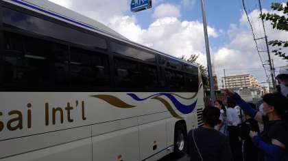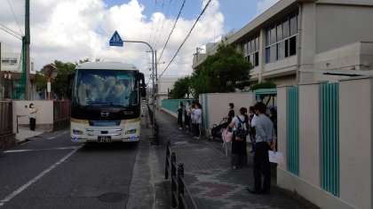 9時前にバスに乗って、矢田西小学校を出発しました。