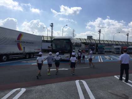 桂川パーキングエリアでトイレ休憩をしました。ここまでの道中は、6年生からのビデオレターで楽しんでいました。6年生の皆さんありがとう!