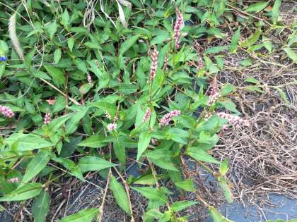 もくもくひろばのあぜ道で見つけました。花は、枝先に穂のようにかたまってつきます。赤い花を赤飯に見立ててて遊ぶため、アカマンマとも呼ばれます。