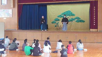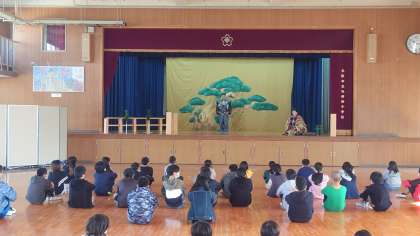 古典芸能なので、少し言葉遣いが難しいところもありましたが、子どもたちは熱心に舞台に見いっていました。時折、笑いもおこり、子どもたちにとってもいい経験になったのではないでしょうか。