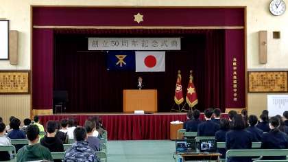 記念式典には、新型コロナウイルス感染防止のため、これまでお世話になった地域やPTAの皆様と教職員の皆様を、たくさんお招きすることはできませんでした。しかし、誰もが創立50周年を心からお喜びになり、皆さんを応援しておられることでしょう。