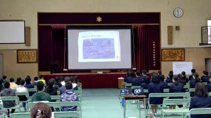 11月6日(土曜日)の人権デーの後に、大阪市立矢田西小学校と矢田西中学校の創立50周年記念式典が行われました。式典には6年生が参加し、その代表が矢田西小学校の紹介をしました。今日、その時に使った映像を皆さんにも見てもらう予定です。楽しみにしていてください。