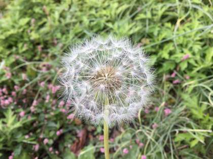 もくもくひろばで、セイヨウタンポポの綿毛を見つけました。