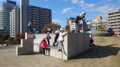 お昼からは扇町公園で昼食を食べて、その後遊具などで遊びました。