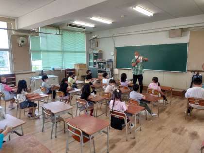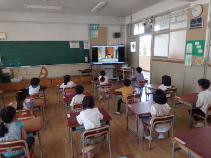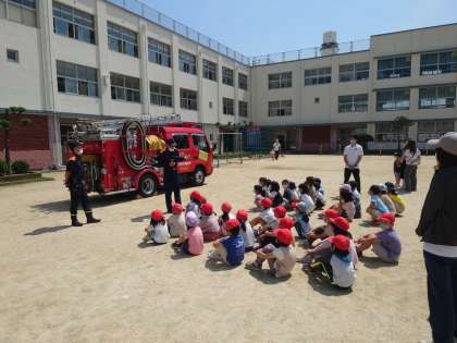 1・2年生はDVD視聴、新聞紙を使った簡易スリッパ作り、消防車の見学を行いました。