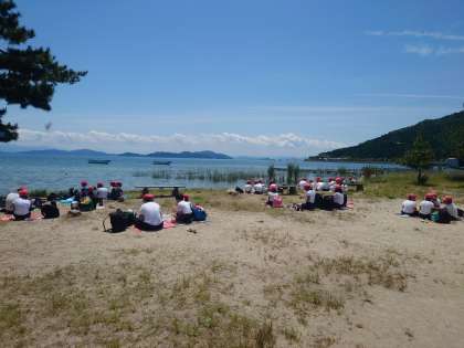湖を眺めながら昼食です。ほどよい初夏の日差しと湖面からのさわやかな風がここちよく、食がすすみます。