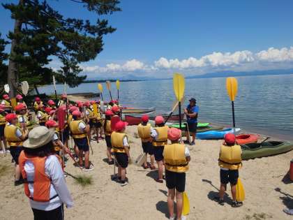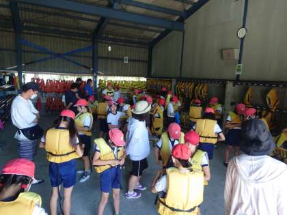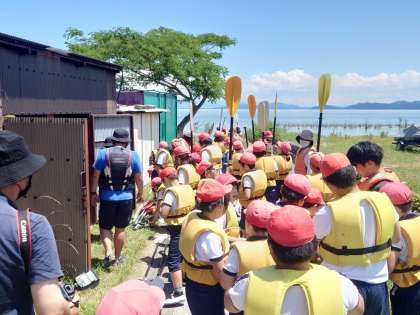 次にライフジャケットを着用してパドルの使い方や乗り方・漕ぎ方の説明を受けます。