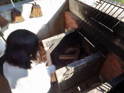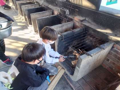 カレー作りその3。まきを準備し火をおこします。