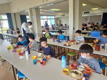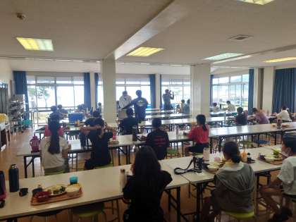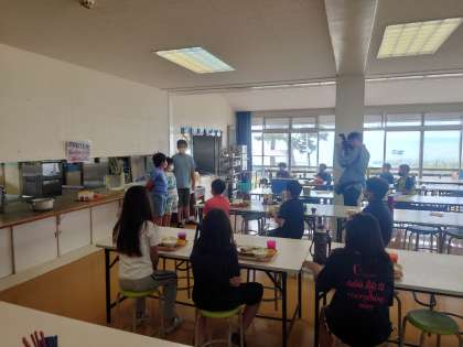 準備ができたら、食事係が班のメンバーを呼びに行き、みんなで「いただきます」。