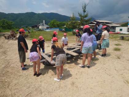 全てくくれたら、一度持ち上げて、くくれてないところがないか確認します。しっかり結べてるかな?