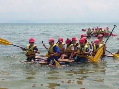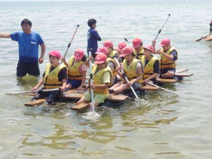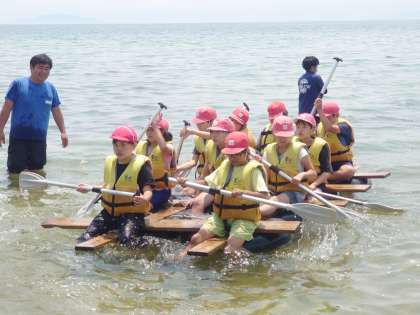 沖のブイをぐるっと1周して湖岸まで。
