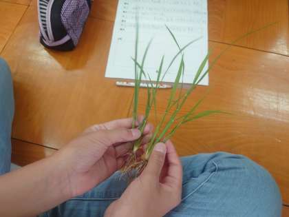 今日は毎年お世話になっている地域の田中さんに来ていただき、田植え体験の事前学習を行いました。田植え体験に向けて、稲のお話や田植えについて優しく丁寧に教えていただきました。天候がよければ明日、田植えの予定をしています。