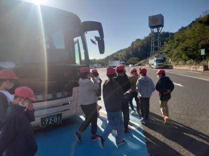 紀の川SAでトイレ休憩です。この後、渋滞などがなければ、50〜60分ほどでの帰校を見込んでいます。