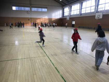 体育館では、ふえおに、ドッヂボールを行い楽しく過ごしました。