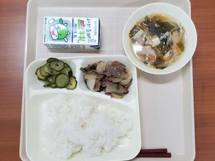 今日のこんだては「プルコギ」「とうふとわかめのスープ」「きゅうりのあまずづけ」でした。給食委員会の児童たちが、放送や児童だまりでのかたづけなどを手伝ってくれています。感謝の気持ちをもっていただきました。