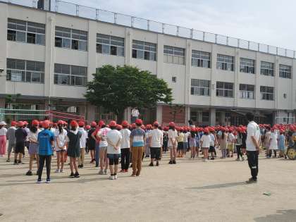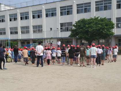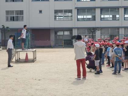 今日の児童朝会では、今月の月目標である「きまりを守ろう」との関連で、校長先生や担当の先生から校内外でのルールやマナーについての話がありました。また、健康委員会の代表児童からの報告もありました。