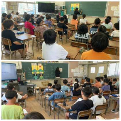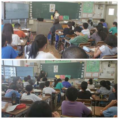 5・6年生は、他校栄養教諭の先生から栄養指導をしてもらいました。5年生は「1日のスタートは朝ごはんから」、6年生は「一食分の食事について考えよう」というテーマで、栄養バランスについて学びました。