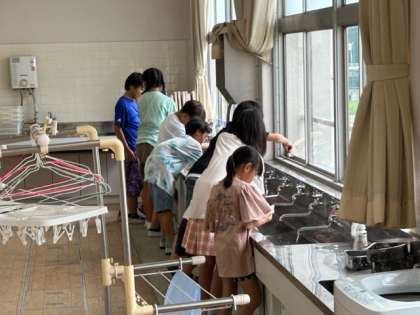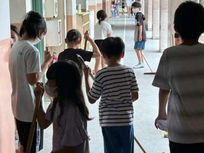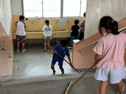 たてわりで廊下や階段などを真剣にきれいに掃除していました。