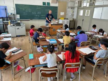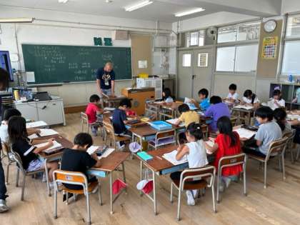 たくさんの先生方が参観してるなか、児童は集中して授業を受けていました。