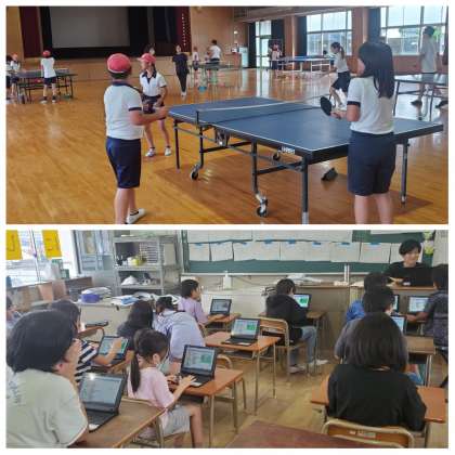 4・5・6年生の6校時は、今学期最初の「クラブ活動」でした。体育館ではバスケットボールとバドミントン、講堂では卓球、各教室ではパソコン・室内ゲーム・家庭科の6つのクラブが楽しそうに活動してました。