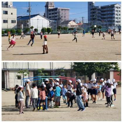 日ざしが届いて心地よい天気です。始業前の時間は6年生が中心となり全校児童が、のびのびと〜たてわり遊び〜を楽しんでました。朝から少しの運動を取り入れることで、授業への切り替えもスムーズにいってます。