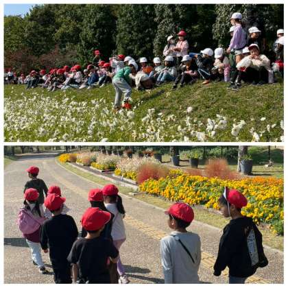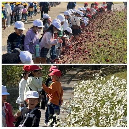 1年生は、2校時から近隣の長居植物園へ秋さがしの校外学習に向かいました。園内は、コスモスが見ごろを迎えています。児童たちは、色とりどりのコスモスをながめたり、香りをかいだりして楽しんでいました。