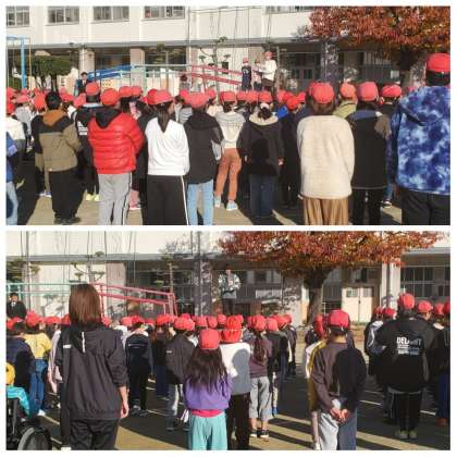 冷え込む朝となりました。児童朝会で校長先生からは「ちがいをみとめあい、たがいを尊重しよう」という人権週間のお話。さらに、図書委員の児童から新刊フェアの案内、当番の先生から安全生活の話がありました。