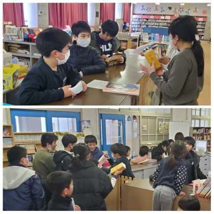 今日も昼休みの図書室開放には、図書委員の児童が本の貸し出しや返却の仕事をしてくれています。また、先週に続きおみくじの結果により、しおりがもらえる新たな企画が好評で、来室者の増加につながっています。