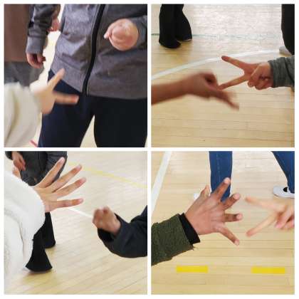 今日から16日(金)までの昼休み、卒業前の6年生と各学年が順次体育館で「大将じゃんけん」を行います。今日は4年生。3分間の交代制で勝ち抜いた児童数を競いました。歓声が響き渡り盛りあがっていました。