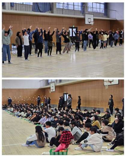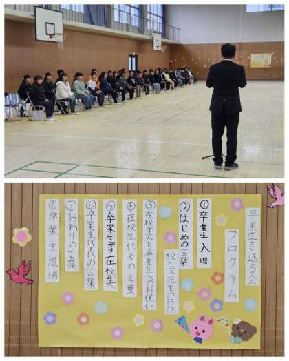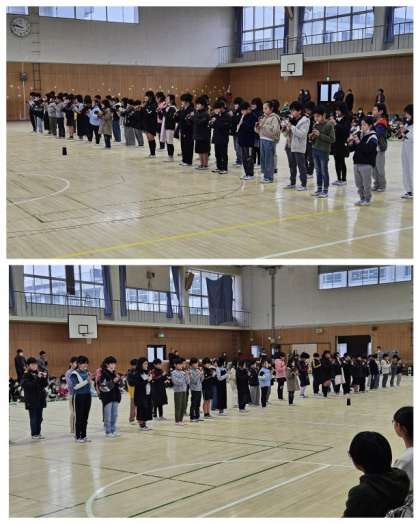 今日は、1年生から5年生の児童が卒業生に感謝の気持ちを込めて送別する「卒業生を送る会」が開催されました。校長先生のあいさつに続き、4年生の児童が全員で、リコーダー演奏と歌を披露し会が始まりました。