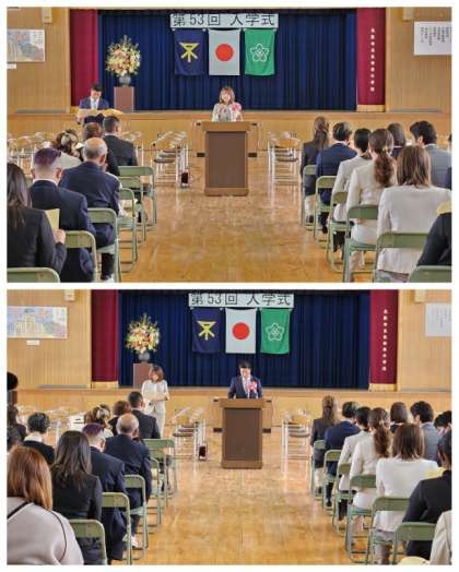 担任の先生やお世話になる先生方の発表があり式終了後には、保護者の方々に講堂で、担任から学校生活に関する説明をさせていただきました。