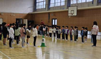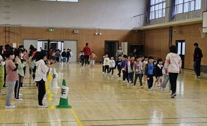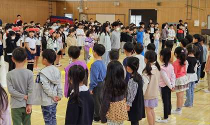 始業前に、体育館で1年生を歓迎する「対面式」が行われました。2年生から6年生が手拍子で迎え入れ、6年生の代表児童が歓迎のことばを述べました。1年生も少しずつ緊張感や不安感がとれていくことでしょう。