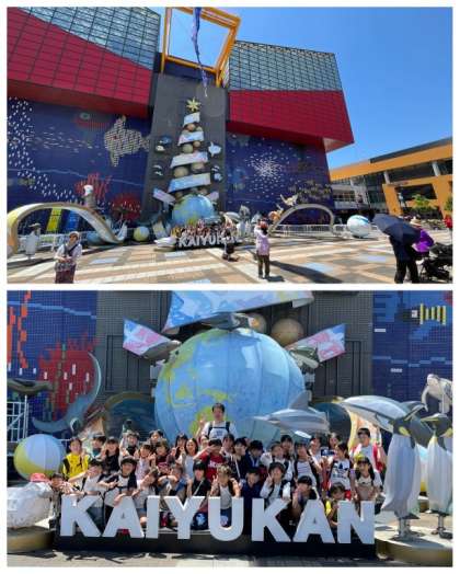 海遊館を出て、建物を背景にして広場で学級写真を撮影しました。