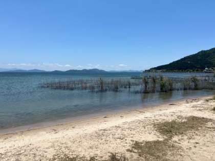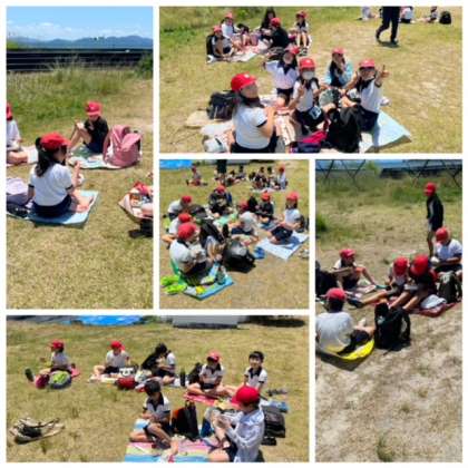 琵琶湖のすぐ横で、お弁当タイムです!自然の中で食べるお弁当は格別です!いただきまーす!