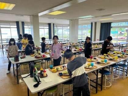 食事係がしっかり準備をしてくれました。みんな、美味しく朝食をいただいています。