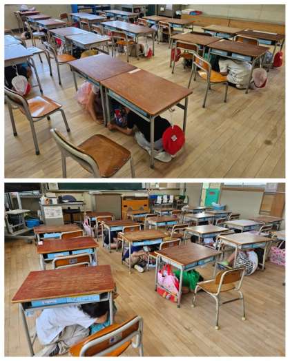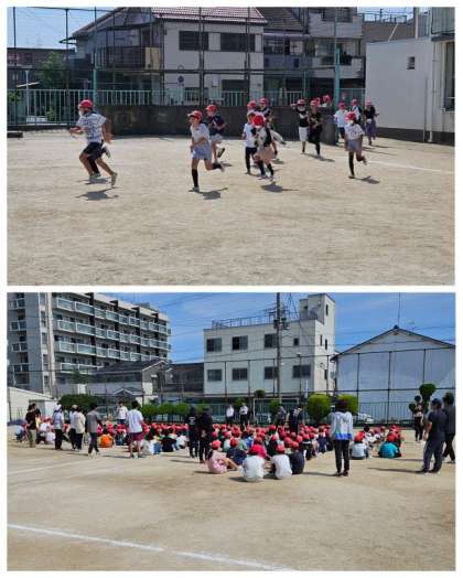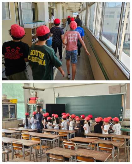 今日の避難訓練では、地震および津波の発災時を想定したものでした。全校児童は、各教室で揺れが収まるのを待って北運動場に避難しました。その後、津波警報が発令されたことを受け、校舎3階へと移動しました。
