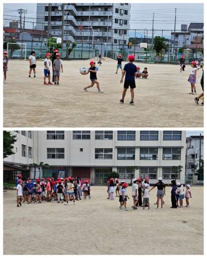 今朝の児童集会は、体育館・講堂、北運動場・中運動場に分かれてのたてわり遊びでした。低・中・高学年でルールを工夫し、ドッチボールやおおなわとび、おにごっこやだるまさんがころんだなどで楽しんでました。