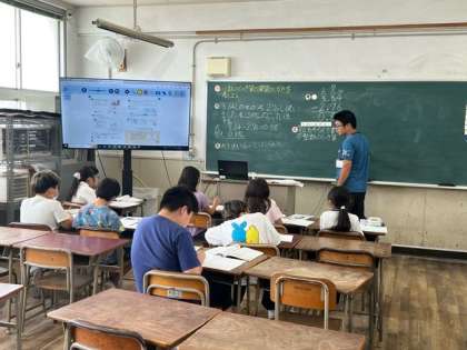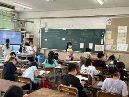 4年生の算数科では学級を2分割にして習熟度別少人数学習を進めています。小数の筆算のしかたや注意点を理解し、練習問題に取り組んでいました。