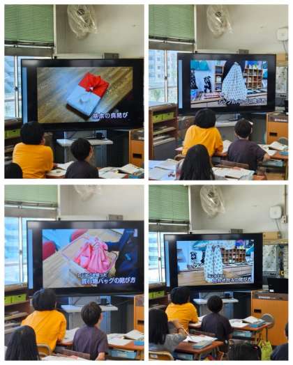 3年生特別の教科道徳の授業は、教科書「ふろしき」が題材でした。どんな形のものでもきれいにつつめる〜まほうのぬの〜の良さに気づき、動画で確認したり、日本や自分の住んでる地域文化についても考えました。