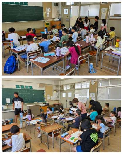 近畿地方も梅雨明けとなりました。早朝よりタグラグビーの朝練習が行われてました。学校では、26日(金)まで全学年ともプール開放・学習会・図書館開放が予定されてます。初日は多くの児童が参加してました。