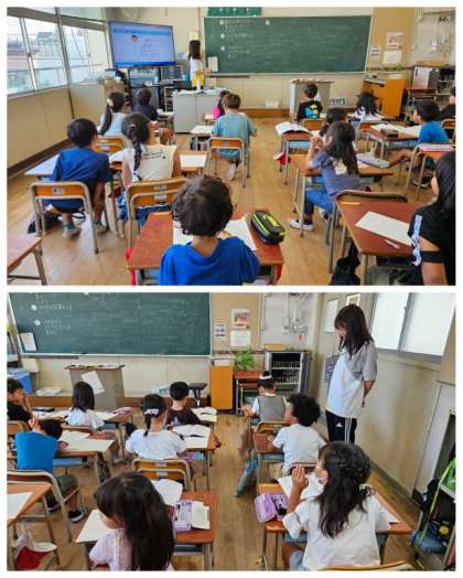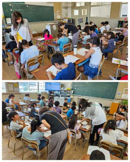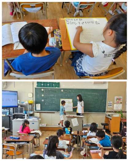 2年生算数の授業では、児童たちが「26+7」を20と6と7に分けたり、26と4と3に分けたりして答えの出し方をくふうして計算しました。練習問題でも数字を見ながら大切な式の見方や考え方を学びました。