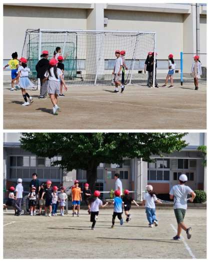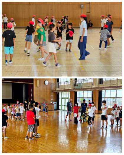まだまだ厳しい暑さが続いています。北運動場や中運動場は、今朝から強い日ざしが届いていました。体育館や講堂も使って全校児童が4つの班に分かれて、6年生がリーダーシップを発揮して仲よく遊んでいました。